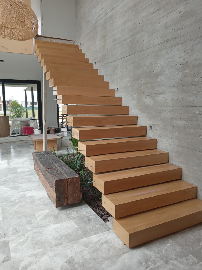 Cada escalón se fabrica a medida, garantizando precisión en encastre, terminaciones de alta calidad y una excelente durabilidad en el tiempo.